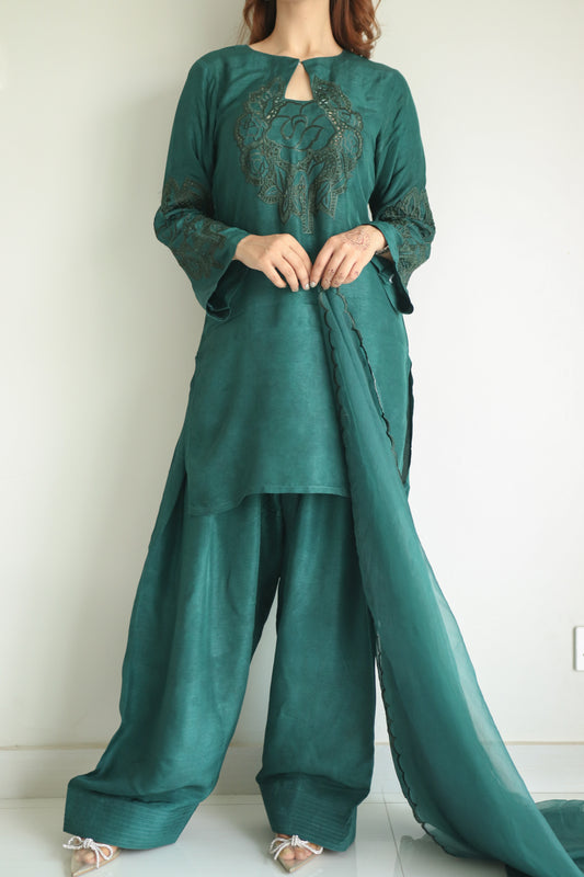 Emerald Elegance 3-piece tussle silk dress